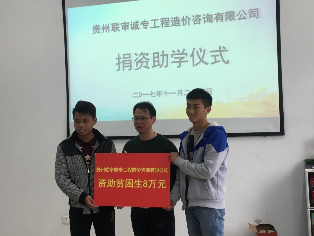 最后,民建贵阳市委副主委徐朝刚在讲话中指出,贵州联审诚专工程造价咨询有限z6mg人生就是博官网在蒸蒸日上之时,不忘感恩回报社会,帮助家庭经济困难的老员工完成自己的学业。同时,希望受资助的员工能珍惜来之不易的学习机会,常怀感恩之心,严格要求自己,注重创新创业,全面发展,不断进取,早日成才。据悉,贵州联审诚专工程造价咨询有限公司今年在z6mg人生就是博官网共捐赠贫困助学金八万元、“三创”励志金两万元。