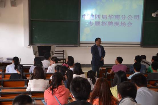 4月15日下午,中建四局华南公司贵州分公司总经理、副总经理及公司各部门负责人前来公司,针对公司2016届土木工程和工程管理专业毕业生进行现场招聘,招聘会在公司3411教室进行,相关专业毕业生100余人参加。