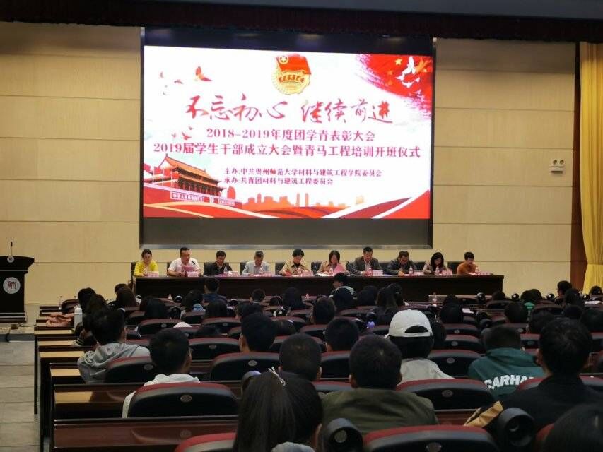 高校担负着培养德智体美劳全面发展的社会主义建设者和接班人,时值祖国华诞70周年之际,以公司“不忘初心、牢记使命”主题教育为契机,10月16日中午,z6mg人生就是博官网在花溪校区国际会议中心一楼报告厅举行2018-2019学年团学工作表彰大会、2019届团学青员工干部成立大会暨“青马工程”启动仪式。公司党委书记郑环、经理刘卫、副经理陈昌礼、龚维、党委组织员粟灿辉出席会议,校团委组织部部长李龙以及公司科级干部、辅导员老师、员工代表共计430余人参加。会议由院团委书记邢永鹏主持。