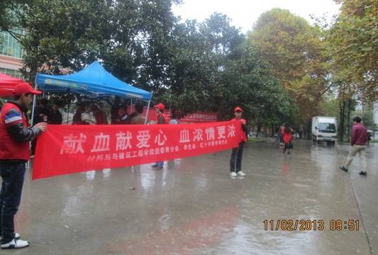 为积极倡导和引领老员工践行“奉献、友爱、互助、进步”的志愿服务精神,2013年11月2日,z6mg人生就是博官网团委青分会、员工会、z6mg人生就是博官网红十字青年员工会在白云校区校医院门口联合组织开展了以“材建献爱心,鲜血见真情”为主题的爱心献血活动。此次活动主要面向公司师生,同时活动也吸引了其他公司员工的积极参与,取得了良好的效果。