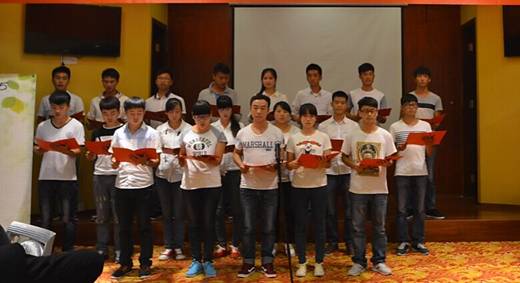 公司党总支陈辉林书记代表公司向代小林及泉州联审贵阳分公司表示衷心感谢。他讲到,捐资助学是一项功在当代、利在千秋的宏伟大业,是和谐社会精神文明建设的新风尚,值得提倡和大力弘扬。泉州联审贵阳分公司几年来对公司贫困学子捐资助学更多的是体现了一个公司强烈的社会责任感,其意义重大而深远。他要求同学们自觉养成严谨的学习态度和刻苦钻研的学习精神,珍惜学习机会,积极培养友善诚信、乐于奉献的精神品格,传承和弘扬中华民族乐善好施、济困帮学的传统美德,心怀感恩,努力学习,以优异的成绩来报答社会。陈辉林代表公司全体师生向泉州联审贵阳分公司赠送“泰山日出”山水画,以表达对泉州联审贵阳分公司的感谢和祝愿。20名受助同学带来的一首“心怀感恩、同心联审”的诗歌朗诵更是传达了员工们对捐赠公司的感恩之情:“落叶在空中盘旋飘荡,描绘着一幅幅感人的画面,那是大树感恩大地对她的滋养。。。。。。是谁给了我展示的平台,让失落的我重拾自信;是谁让我们携手追梦、同心圆梦,是你——泉州联审贵阳分公司”!