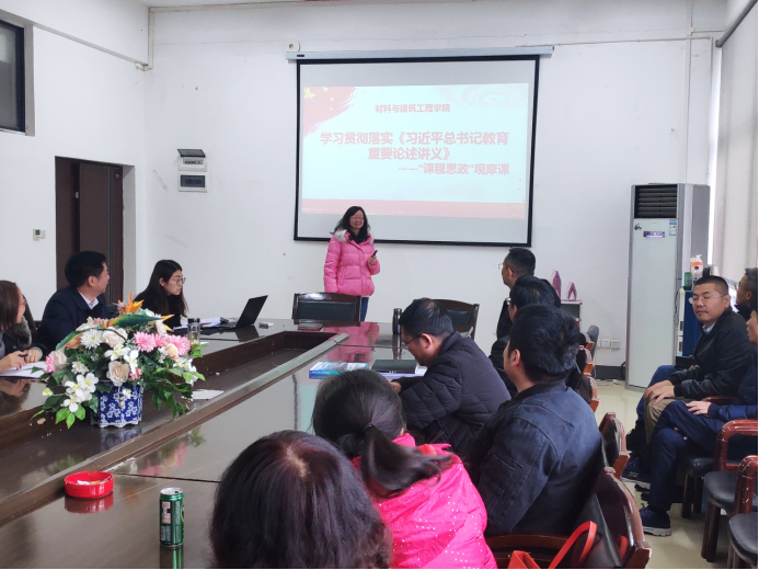 为深入贯彻落实习近平总书记关于教育的重要论述讲义的科学内涵,确保党的教育思想重大理论创新成果深入人心、落地生根。z6mg人生就是博官网12月4日组织全体教职工召开学习《习近平总书记教育重要论述讲义》暨“课程思政”观摩课活动。z6mg人生就是博官网全体教职工出席,会议由郑环书记主持。