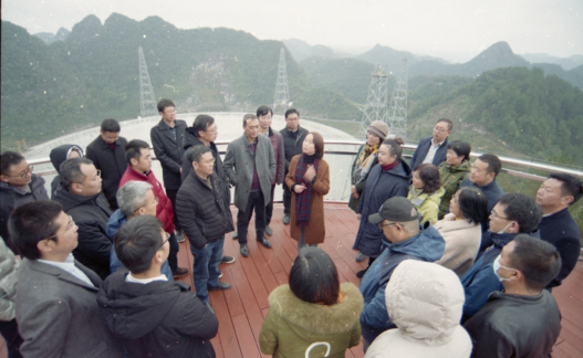 下午,实地参观考察国之重器——平塘FAST大射电望远镜,感受祖国发展伟大成就。在“中国天眼”瞭望台,郑环给大家上了题为《弘扬科学家精神,增强创新活力》的专题党课。她先介绍了习近平总书记在科学家座谈会上的讲话精神,要求大家要大力弘扬科学家精神,始终牢记为中国人民谋幸福,为中华民族谋复兴的初心和使命;要学习人民科学家南仁东先进事迹和精神品格,始终胸怀祖国、服务人民、敢为人先、淡泊名利、无私奉献;要坚定理想信念,不畏艰难,担当作为,切实肩负起历史赋予的科技创新重任和创新人才教育培养,为实现公司科研强院和内涵式发展做出自己应有的贡献。