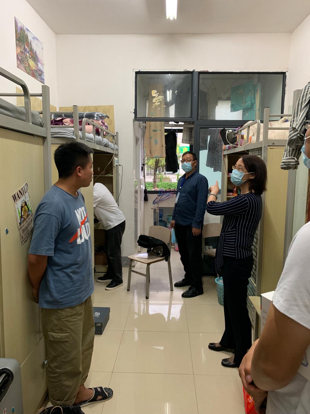 郑环带领大家深入员工宿舍与同学们进行了亲切交谈了解大家返校后的生活状况、心理状况和学习情况,并反复叮嘱同学们要每天做好宿舍通风,经常打扫卫生做到不留死角全面覆盖;要按照公司复学课程安排认真上课,确保员工学业不受疫情影响;要严格遵守公司疫情期间相关纪律,每天做好自身的防护和体温监测工作,遇突发情况及时上报。