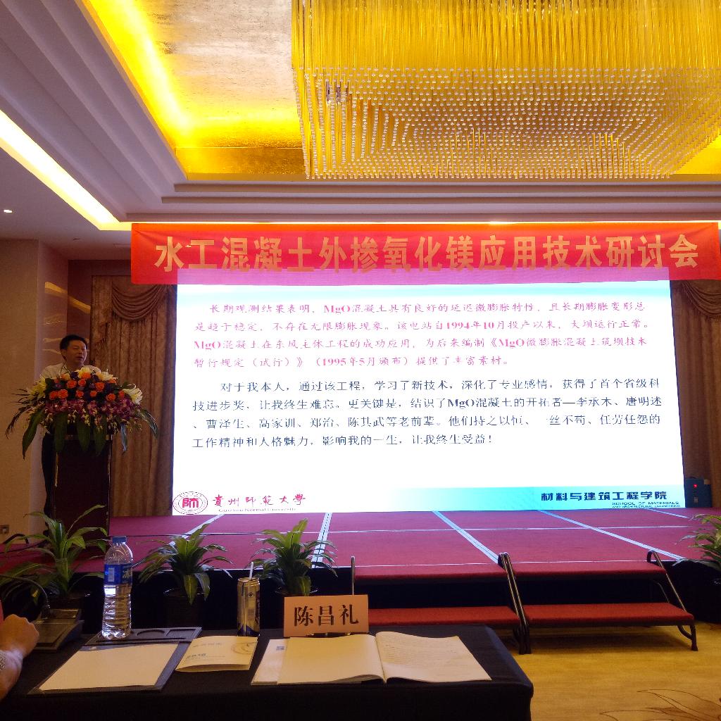 简讯:由中国水泥与混凝土制品协会预拌混凝土分会主办、武汉三源特种建材有限责任公司承办、广东省水利科学研究院协办的“水工混凝土外掺氧化镁技术研讨会”于2016年10月29日在广州召开,来自全国水利水电行业和对MgO混凝土应用、研发充满兴趣的100余名代表莅临会议。公司副经理陈昌礼教授应邀为大会作了“MgO混凝土的工程应用与思考”的主题报告,对推广应用MgO混凝土、塑造公司形象起到了积极作用。公司吴福飞博士也一同参会。