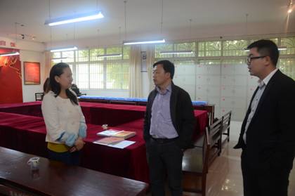 陈辉林一行首先到求是公司党建中心进行参观考察,翻阅公司相关党建材料和自办刊物,听取求是公司党建中心李云云老师对党建工作的相关介绍。