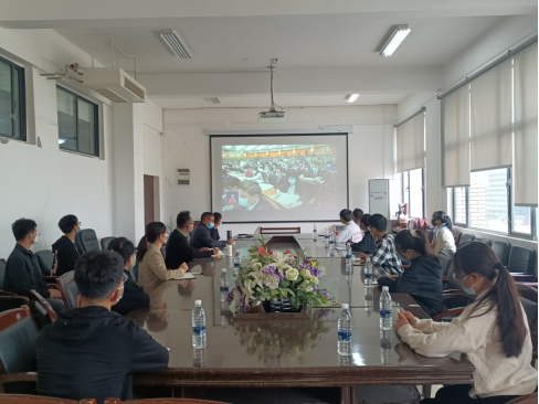 公司党委书记郑环、经理陈昌礼等公司中层干部在花溪校区会议中心一楼学术报告厅观看大会直播。党委副书记组织辅导员,团委、员工会、青分会等主要员工干部在公司三楼会议室集中收看,公司师生在办公室、宿舍等通过网络、电视、广播多种形式收看大会直播盛况。