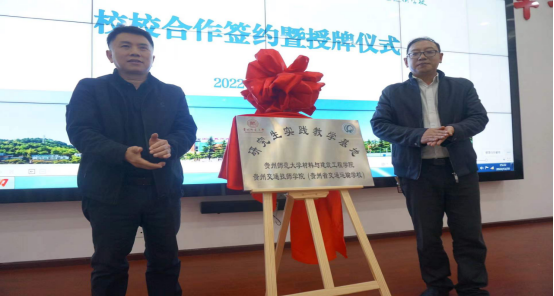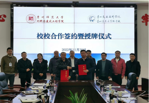 11月30日下午,公司与贵州交通技师公司在该院勤政楼二楼会议室进行了校校合作签约暨授牌仪式。贵州交通技师公司经理陈文均、党委副书记吴畏、副经理袁宗齐、何志静和公司经理陈昌礼、党委副书记孟忠常、2021级土木水利类职业技术教育研究生等师生出席会议。