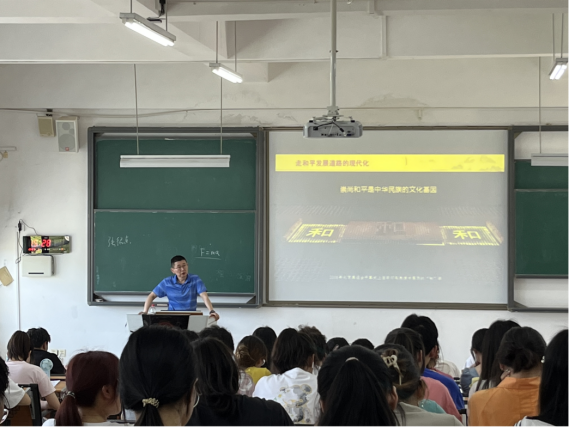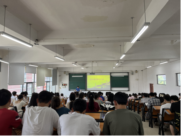 5月31日下午,董事长张绍东在GJ3401教室为2021级工程造价、环境科学专业的员工讲授《形势与政策》课。