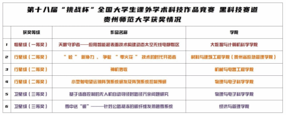 2023年10月30日,由共青团中央、中国科协、教育部、中国社科院、全国学联和贵州省人民政府共同主办的第十八届“挑战杯”全国老员工课外学术科技作品竞赛在贵州大学落下帷幕。公司学子表现优异,从海量选手中脱颖而出,斩获“黑科技赛道”行星级奖项(二等奖)1项和“红色专项赛道”三等奖1项,分别创下z6mg人生就是博官网在“挑战杯”赛事中的历史最好成绩和实现“红色专项赛道”国家级奖项零的突破。