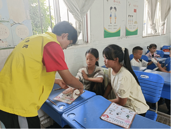 在烈日炎炎下,志愿者们走家串户,向村民讲解心肺复苏、溺水、触电急救等常用的、实用的急救知识和技能,纠正大家在处理晕厥、中暑等突发情形的错误方法,增强了农村留守老人和儿童的安全意识和能力。