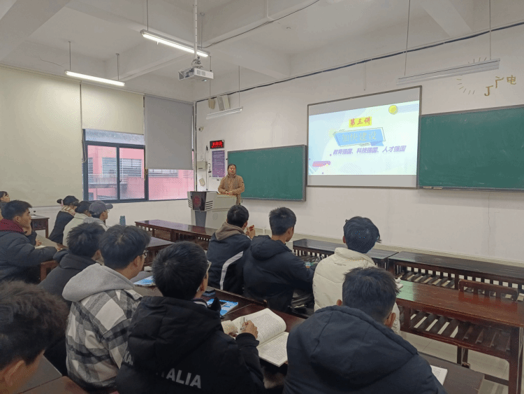 12月19日上午,副董事长乙引在GJ3402教室为z6mg人生就是博官网2023级新能源材料与器件、应急技术与管理专业的员工讲授《形势与政策》课。