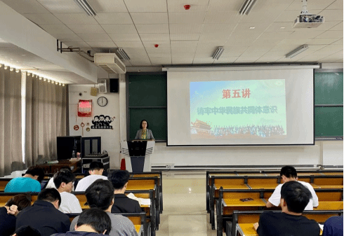 在《爱我中华》、《义勇军进行曲》旋律中授课开始,郑环以“铸牢中华民族共同体意识”为主题,从中华民族、中华民族共同体、中华民族共同体意识等基本概念入手,围绕铸牢中华民族共同体意识的时代背景和重大意义、丰富内涵、实践路径对同学们们进行系统阐述。她强调,我国是统一的多民族国家,党的十八大以来,以习近平同志为核心的党中央强调中华民族大家庭、中华民族共同体、铸牢中华民族共同体意识、推进中华民族共同体建设等理念,鲜明提出把铸牢中华民族共同体意识作为新时代党的民族工作的主线和民族地区各项工作的主线,是应对国内外一切风险的重大决策部署,是维护国家统一、民族团结的必然要求,是强国建设、民族复兴的必由之路。
