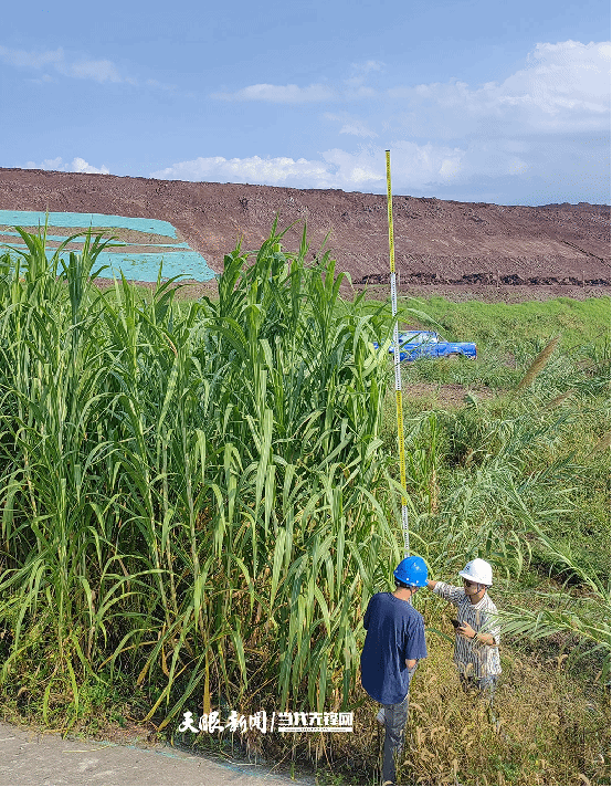 黎阳教授团队在测量赤泥“土壤化”后种植的芦竹。