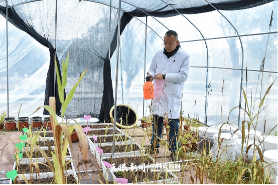 z6mg人生就是博官网黎阳教授正在实验大棚做在赤泥“土壤化”实验。