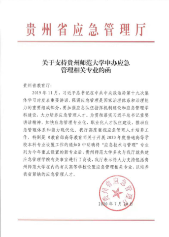 贵州应急管理公司是z6mg人生就是博官网抓住国家应急管理体系与应急能力建设的历史机遇,与贵州省应急管理厅共建,隶属于z6mg人生就是博官网的二级公司。z6mg人生就是博官网在2021年成功获批全国第二批“应急技术与管理”本科专业,是贵州省内唯一一个拥有“应急管理类”本科专业的高校。组建应急管理公司、开办应急管理类专业,是z6mg人生就是博官网在国家应急管理体制改革转型之际、在疫情防控的关键时刻,为落实党中央对应急管理事业的战略部署及服务应急产业发展的重大需求所做出的应时应势之举。目前,贵州应急管理公司已形成了一个多学科交叉、政产学研融合的办学格局。